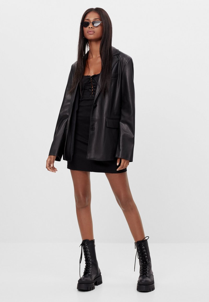 Cappotto sartoriale nero - Bershka. 2799 3999. Abbina il tuo abito a una giacca in pelle o ancora meglio a una giacca nera stile biker da donna la versione più rock per ottenere un look super cool senza fatica.