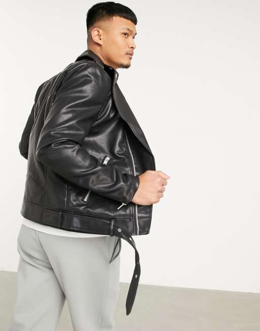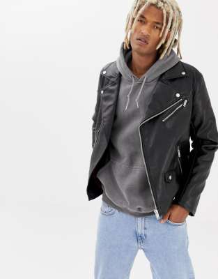 Pull Bear Faux Leather Biker Jacket In Black Asos
