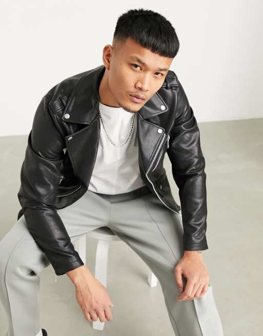 Bershka Faux Leather Biker Jacket In Black Asos