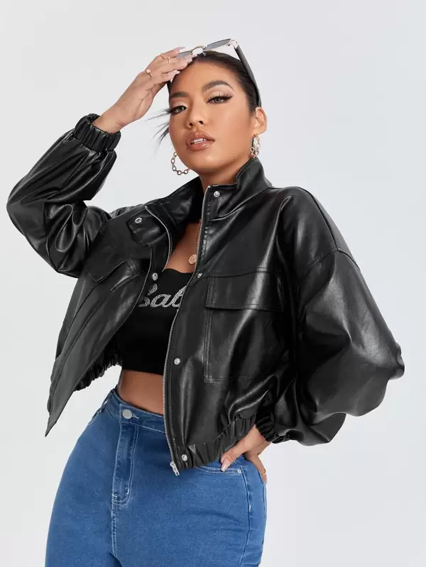 Shein Giacca In Pelle Sintetica Con Spalle Cadenti Con Tasca Con Patta Shein Italia